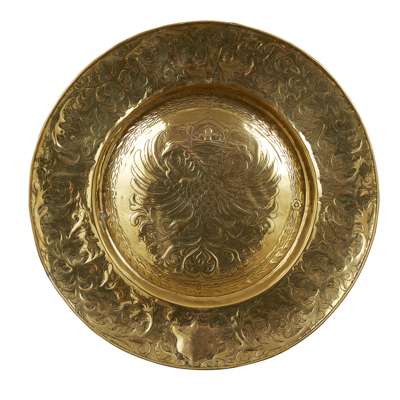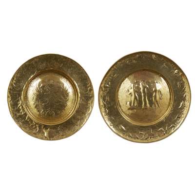 TWO LARGE BRASS ALMS DISHES