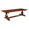 the two plank top with cleated ends raised on square baluster supports and trestle bases joined by a cross stretcher