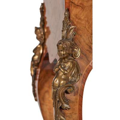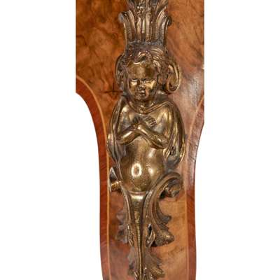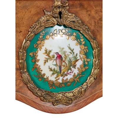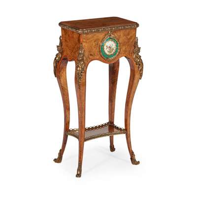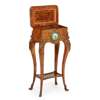 LOUIS XV STYLE WALNUT AND KINGWOOD PORCELAIN MOUNTED TEA POY