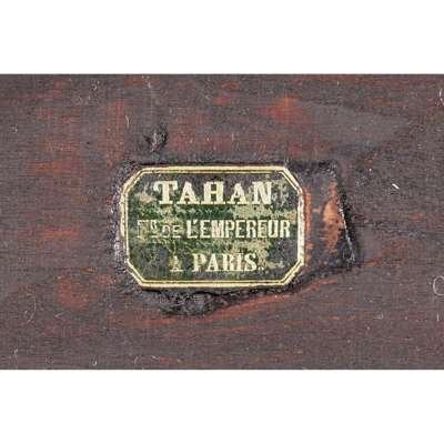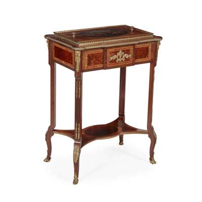 FRENCH AMBOYNA, MAHOGANY, KINGWOOD, MARQUETRY AND GILT METAL MOUNTED JARDINIERE, BY TAHAN, PARIS