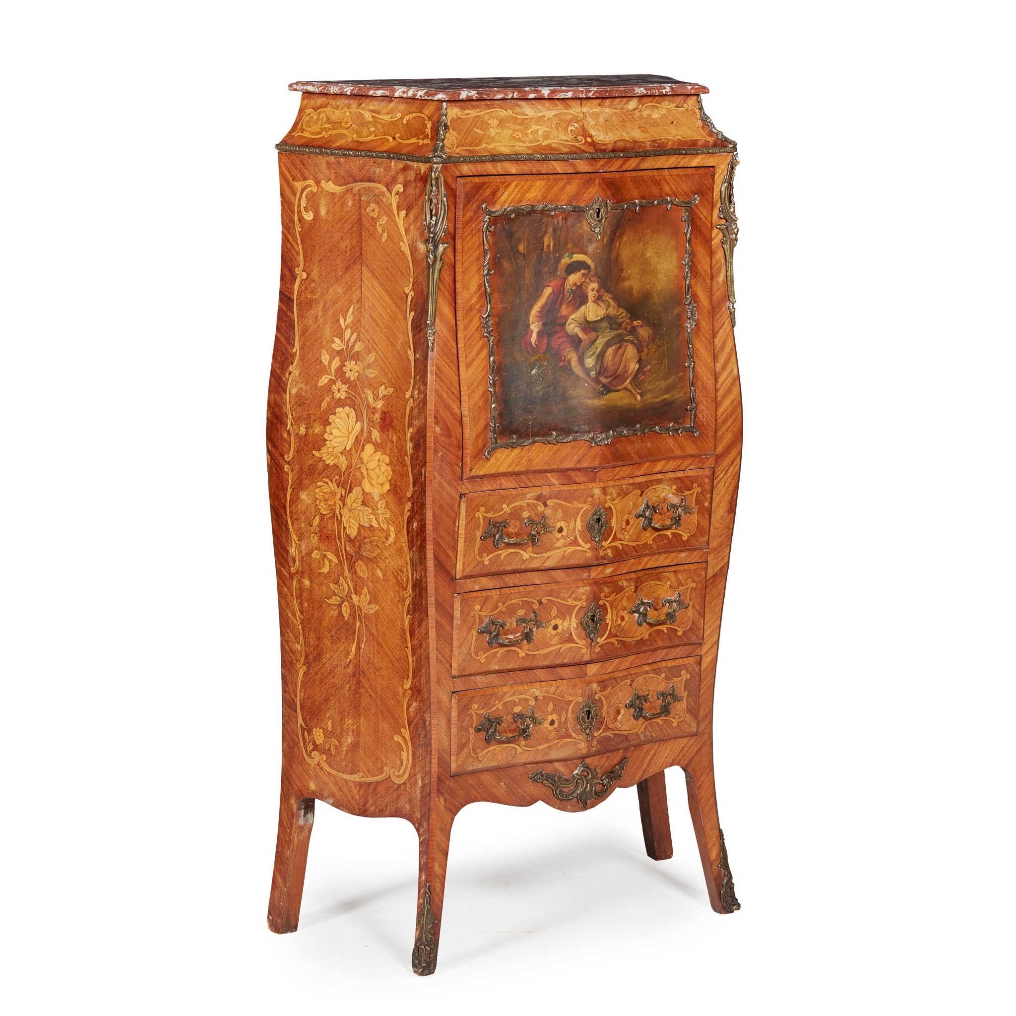 FRENCH KINGWOOD, MARQUETRY, VERNIS MARTIN, MARBLE TOP SECRETAIRE ABBATANT