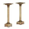 the square platform tops on tapered columns with gilt metal capitals and bases, on square stepped plinths with gilt metal feet