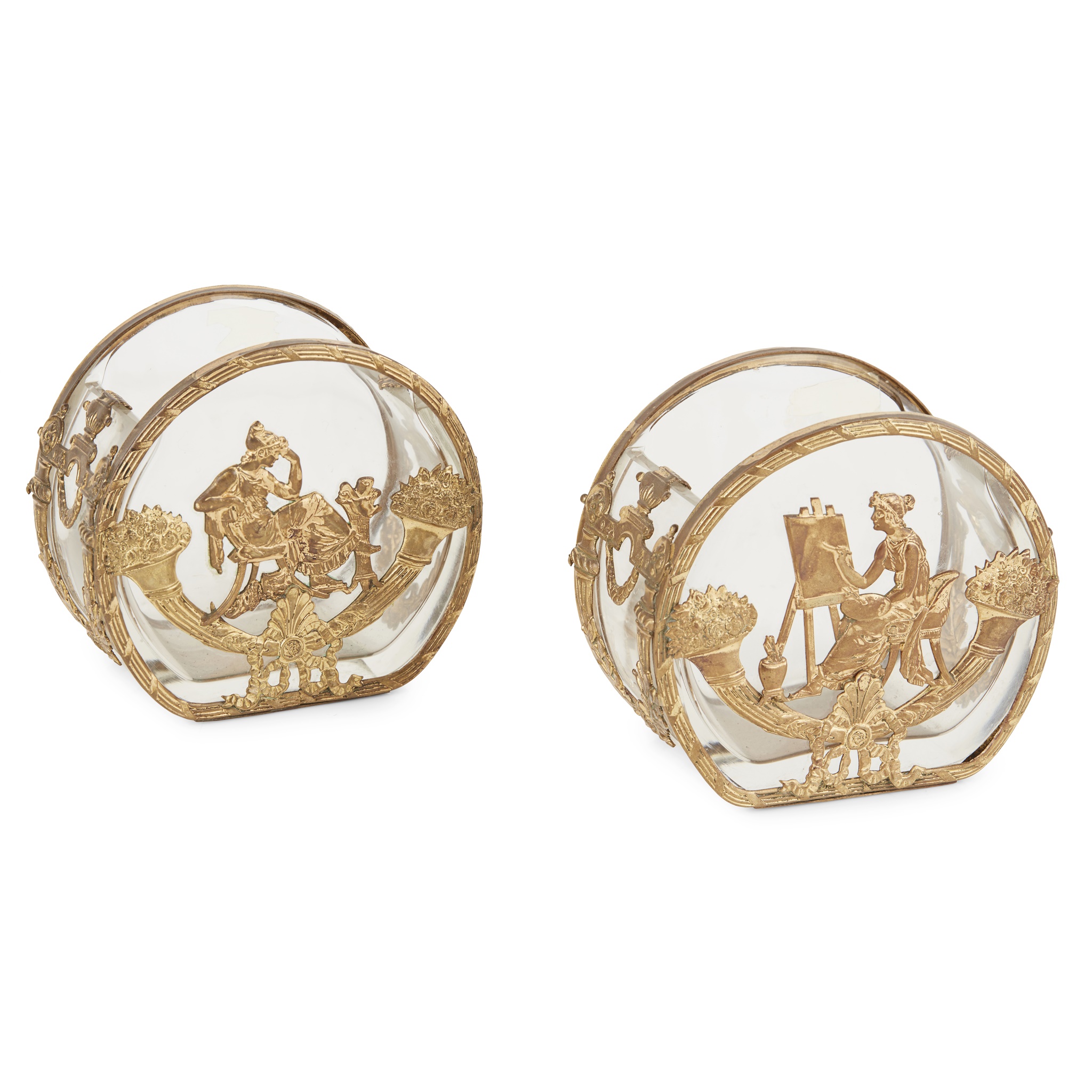 of open circular form, fitted with relief mounts depicting the Muses of Tragedy and Art, within classical borders