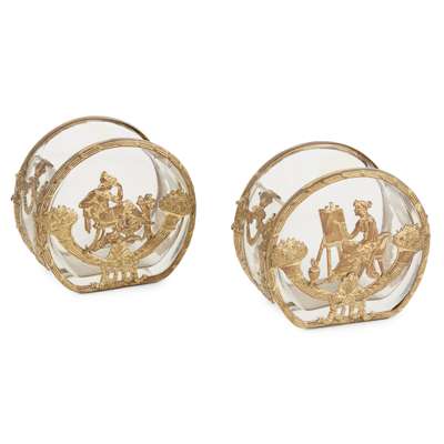 PAIR OF SMALL FRENCH GILT METAL MOUNTED GLASS VASES