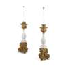 PAIR OF CONTINENTAL GILTWOOD AND CERAMIC ALTAR CANDLESTICKS