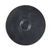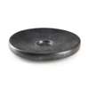 fired ceramic, with a black glaze, standing on a ring base with a gently sloping floor leading to a central depression