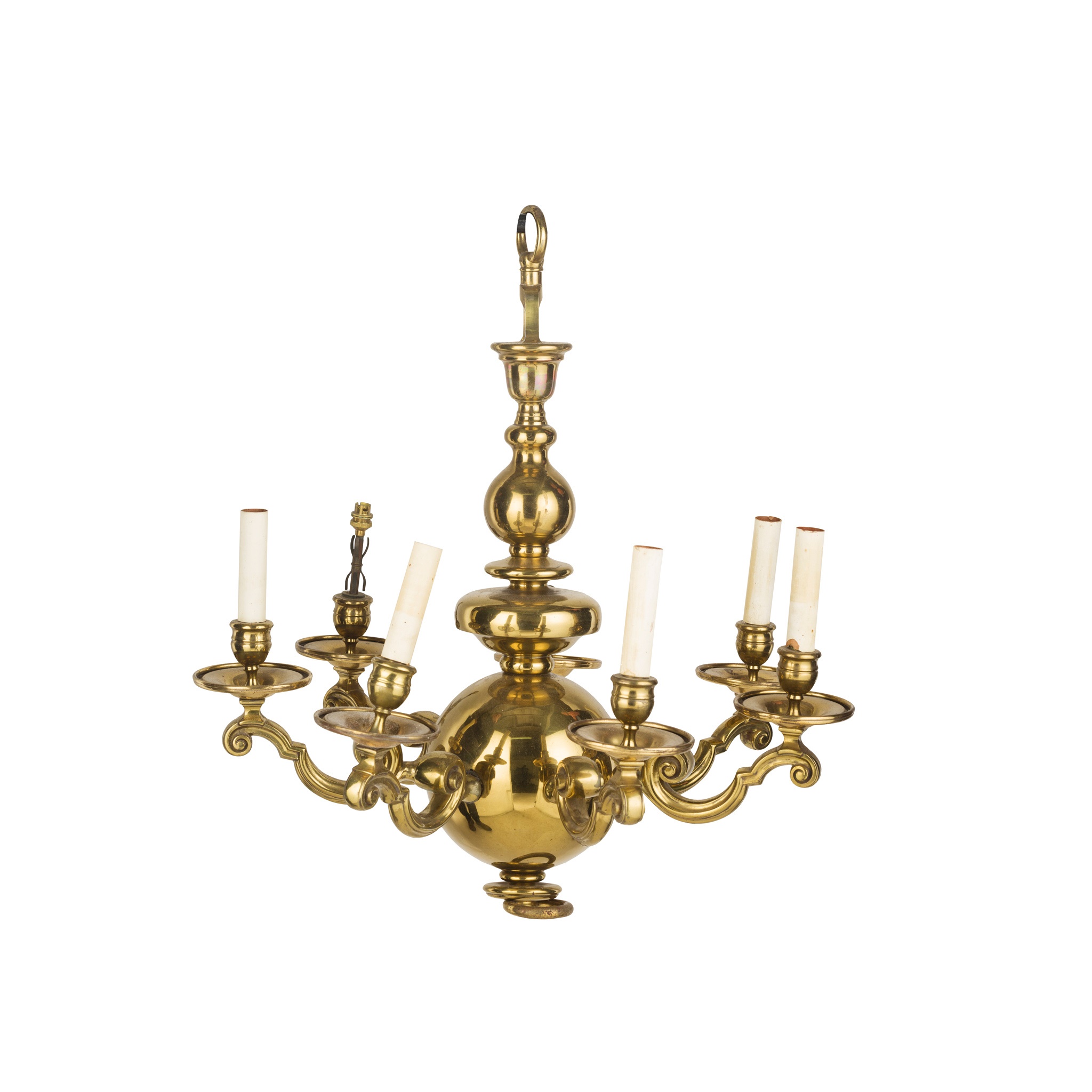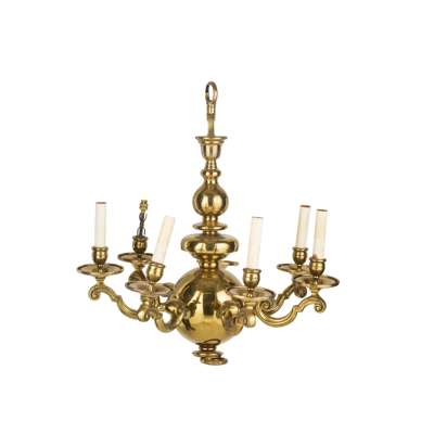 DUTCH STYLE BRASS SIX-LIGHT CHANDELIER