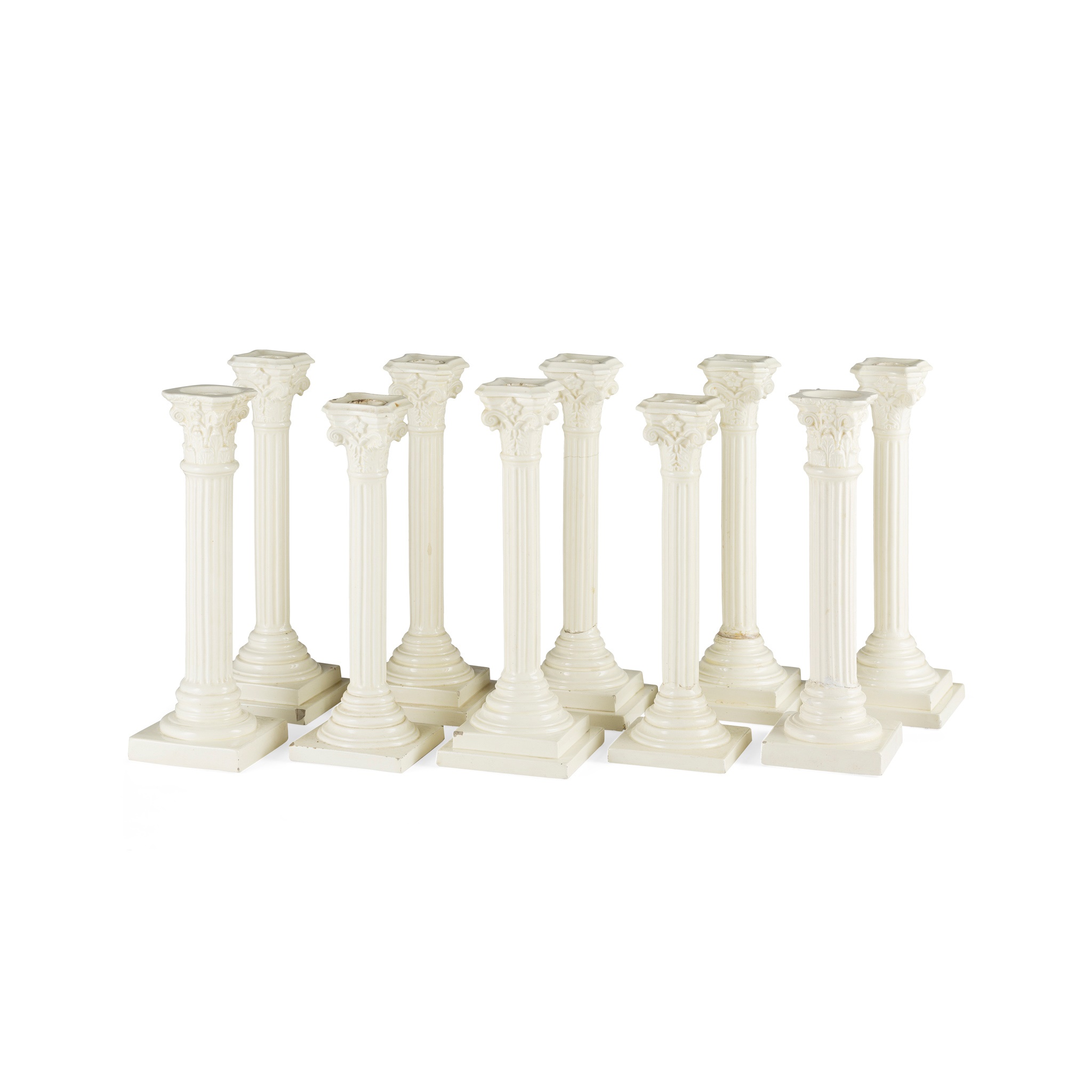 TEN CREAMWARE CORINTHIAN COLUMN CANDLESTICKS