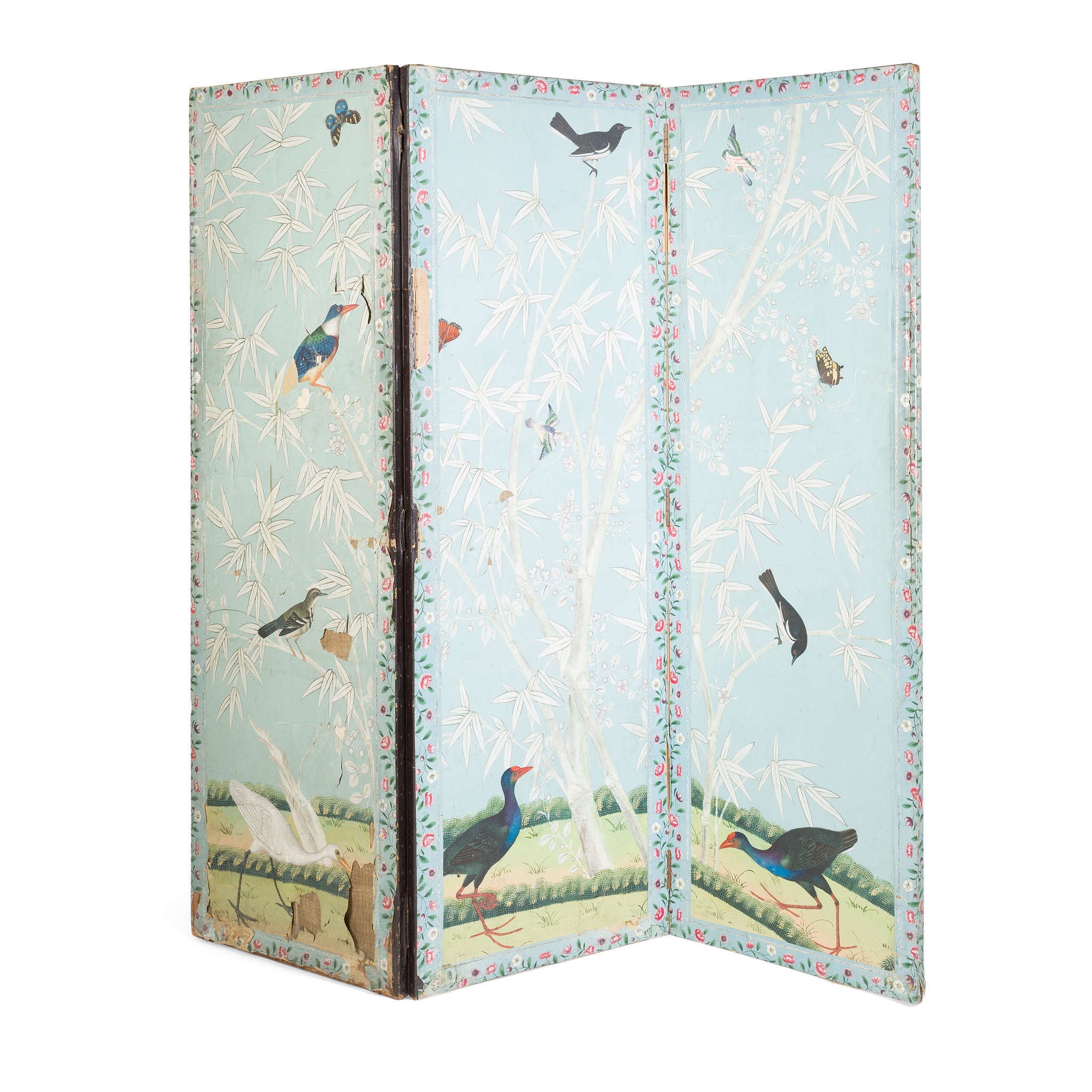 CHINESE WALLPAPER THREE-FOLD SCREEN