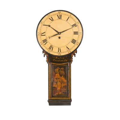 GEORGE III BLACK JAPANNED TAVERN CLOCK, BY HALEY, LONDON