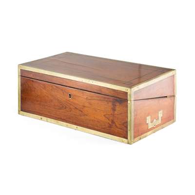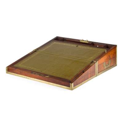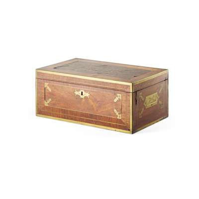 ROYAL INTEREST: ROSEWOOD BRASS BANDED AND INLAID DOCUMENT BOX Y