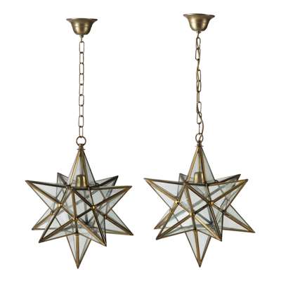 PAIR OF STAR-SHAPED GLASS AND BRASS HANGING LIGHTS