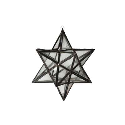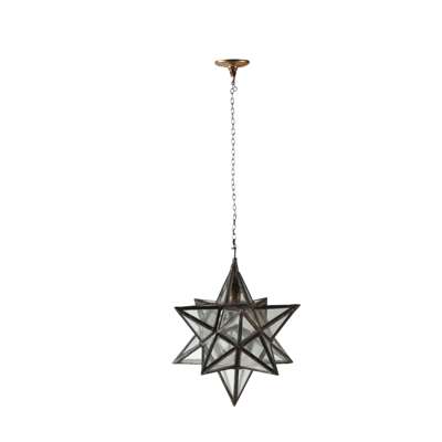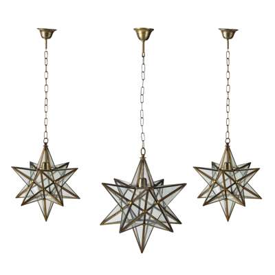 THREE STAR-SHAPED GLASS AND BRASS HANGING LIGHTS