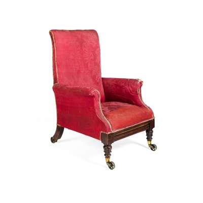 WILLIAM IV MAHOGANY UPHOLSTERED PATENT ARMCHAIR, BY GEORGE MINTER, LONDON