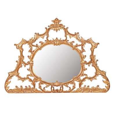 the oval mirror plate in an openwork frame with acanthus, C scrolls, and rocaille
