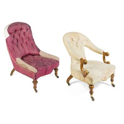 TWO VICTORIAN UPHOLSTERED PARLOUR CHAIRS