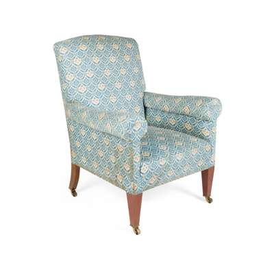 HOWARD & SONS MAHOGANY UPHOLSTERED ARMCHAIR