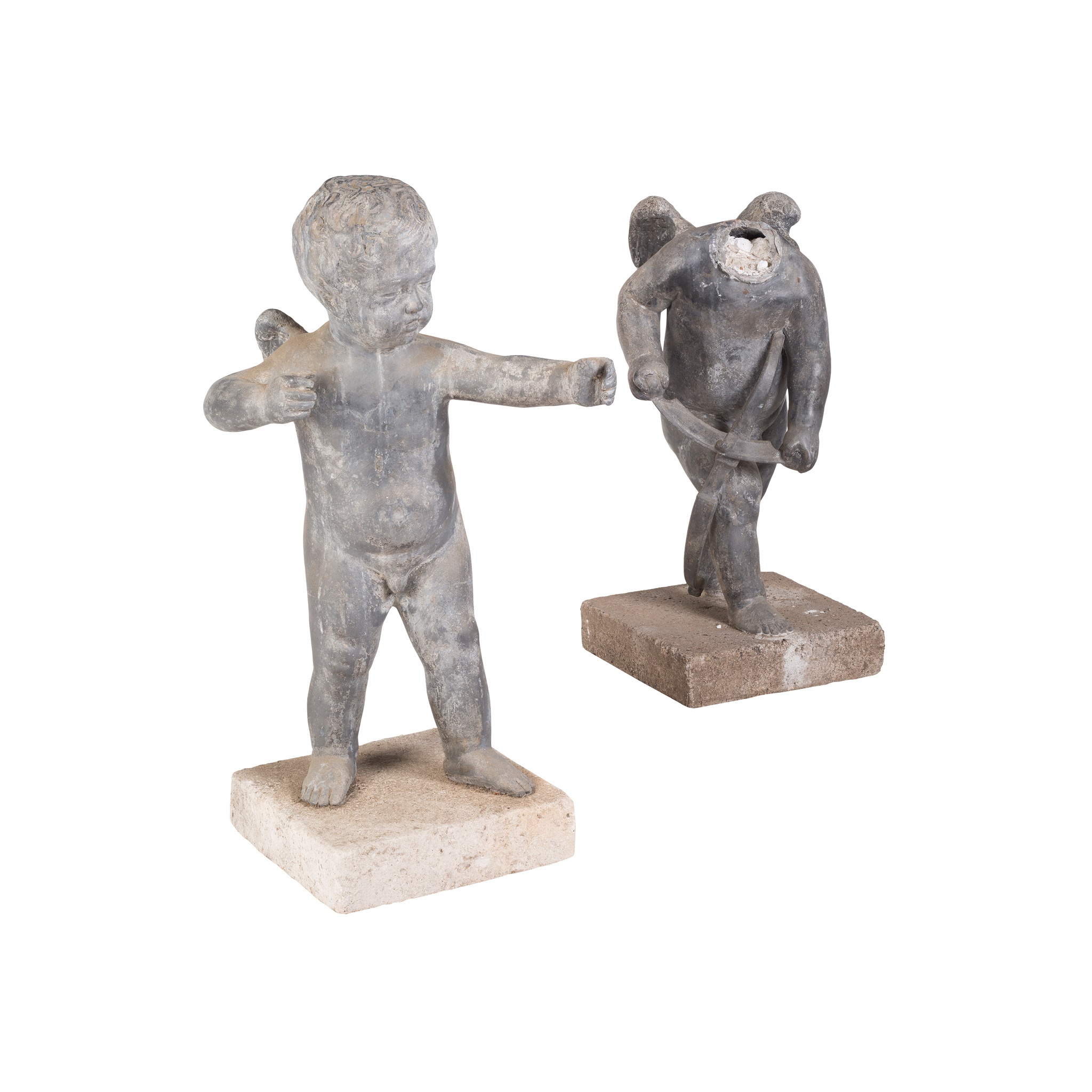 TWO LEAD GARDEN FIGURES OF CUPID