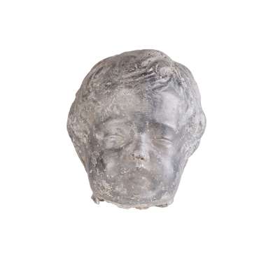 one depicting Cupid drawing his bow, the other with Cupid carving his bow, both mounted on square composite stone bases, one head detached