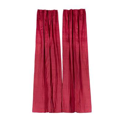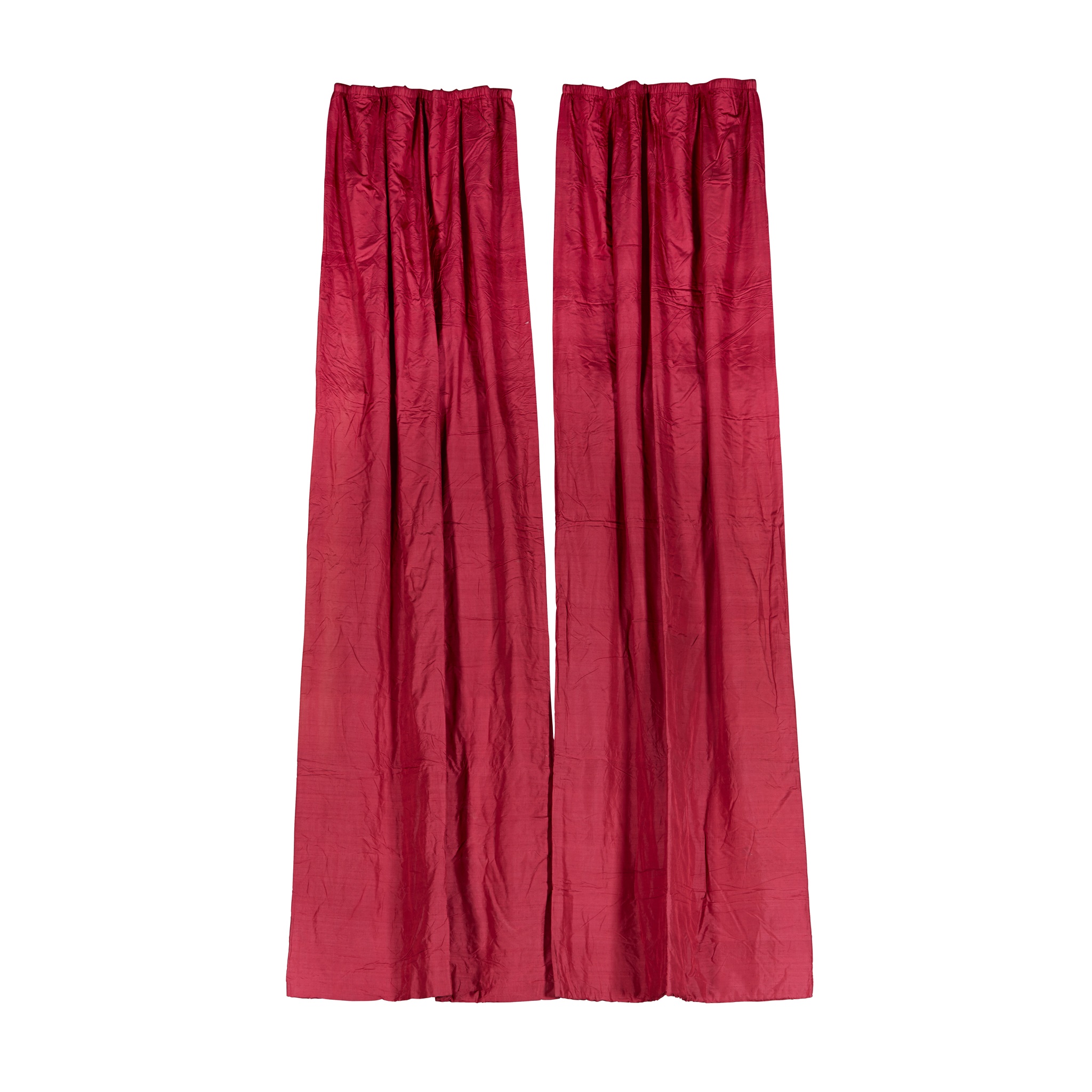 THREE PAIRS OF VINTAGE RED SILK NOIL CURTAINS
