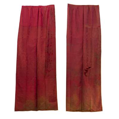 SUITE OF RED SILK DAMASK CURTAINS
