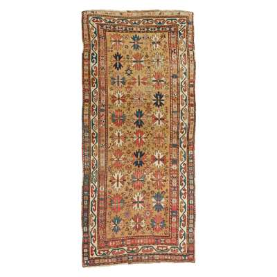 the camel field with allover polychrome star pattern, within ivory stylised vine border
