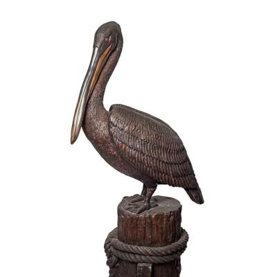 naturalistically modelled and cast standing on pilings, with polychrome patination