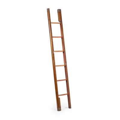 LEATHER AND MAHOGANY FOLDING LIBRARY LADDER
