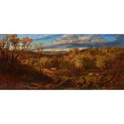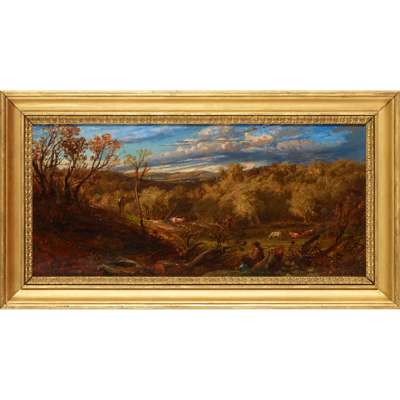 A WOODED LANDSCAPE WITH FIGUES AND GRAZING CATTLE