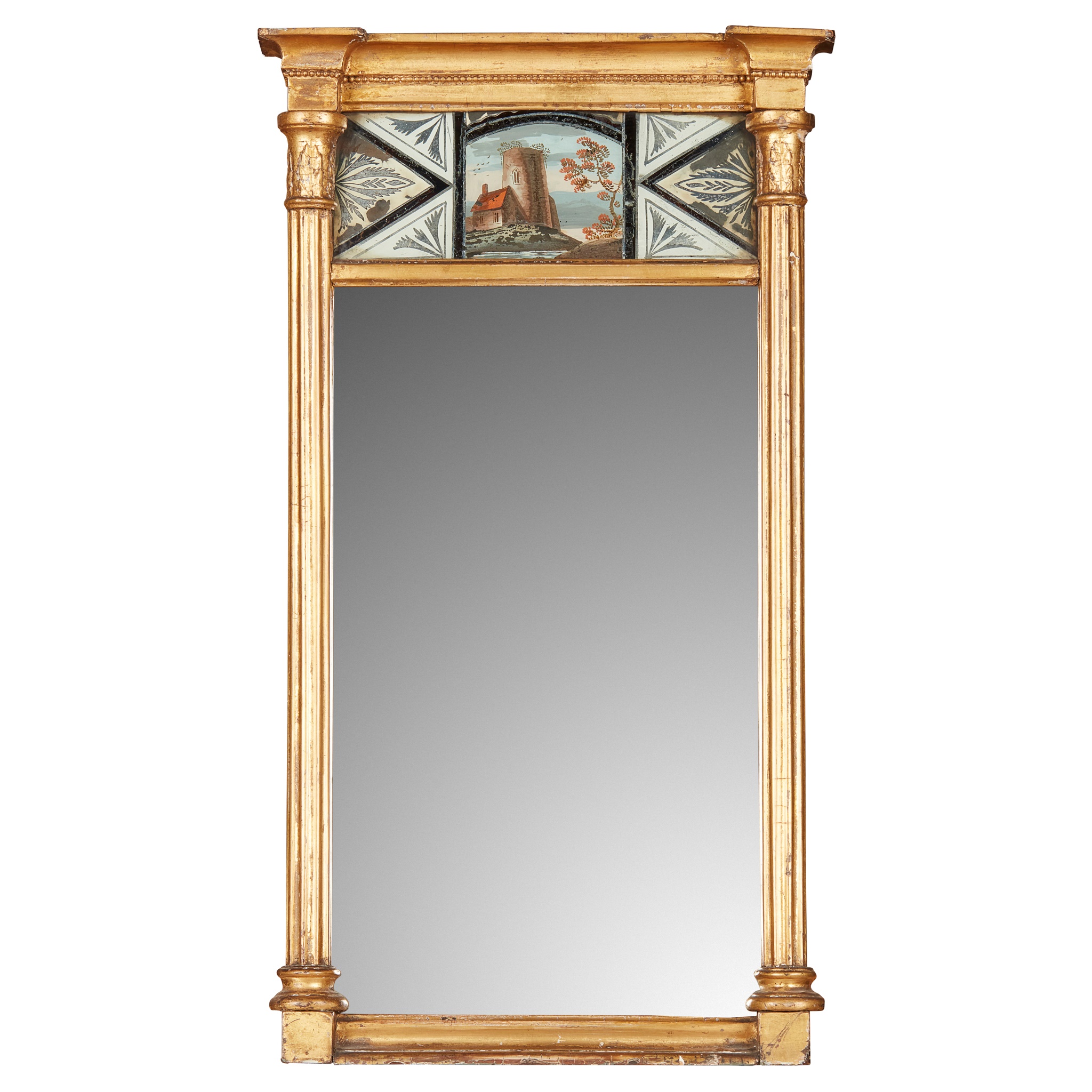 REGENCY GILTWOOD AND VERRE EGLOMISÉ MIRROR