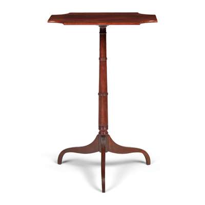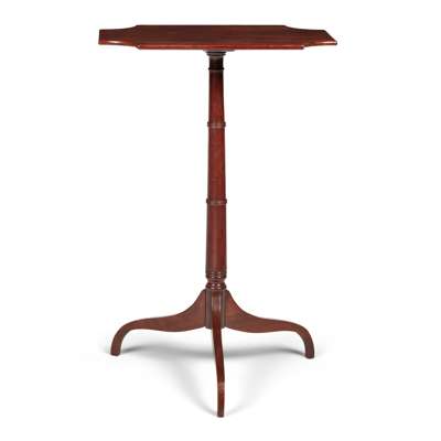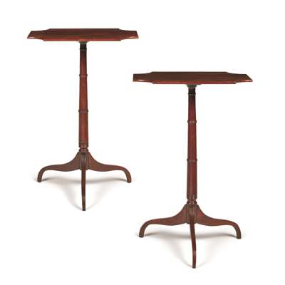 with rectangular tops with re-entrant corners, raised on ring-turned columns and tripod feet