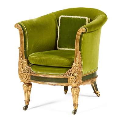 GEORGE IV PAINTED AND PARCEL-GILT TUB ARMCHAIR