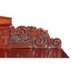 the panel back with a carved flower head and scrolled brackets above three frieze drawers, raised on pedestals with cupboards enclosing drawers and shelves, raised on lobed bun feet