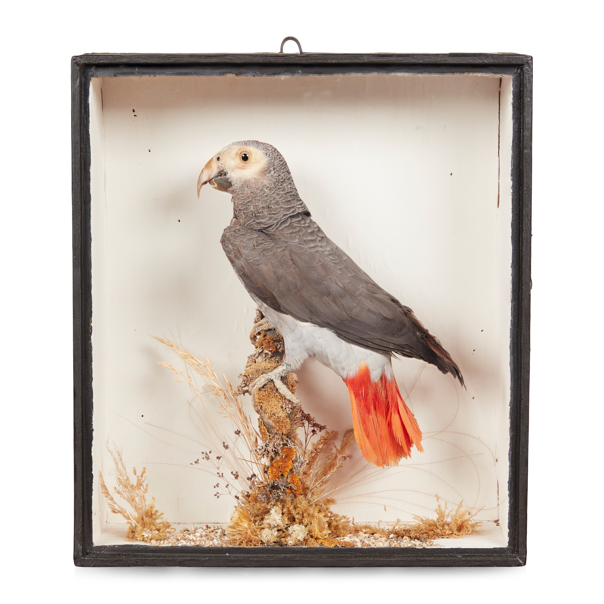 VICTORIAN CASED TAXIDERMY GREY PARROT