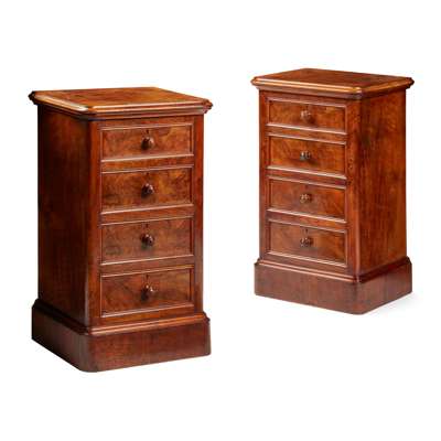 the rounded square top with a moulded edge above four drawers, on plinth bases