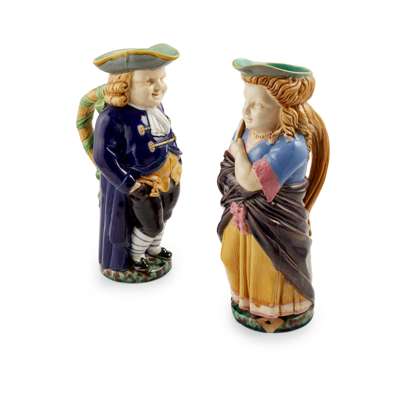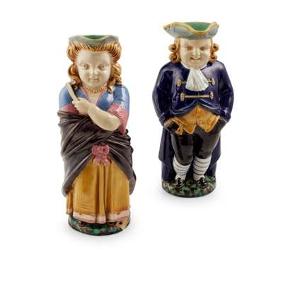 PAIR OF MINTON MAJOLICA TOBY JUGS