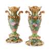 PAIR OF LARGE ROCKINGHAM GREEN GROUND VASES WITH ASSOCIATED DOMES Y