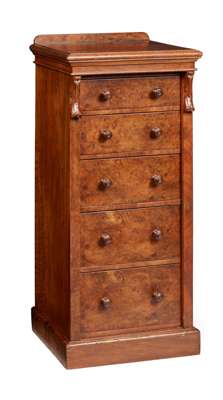 with five graduated lead-lined drawers on a plinth base, with a hinged locking pilaster