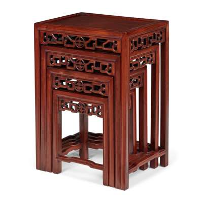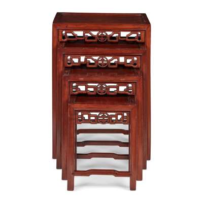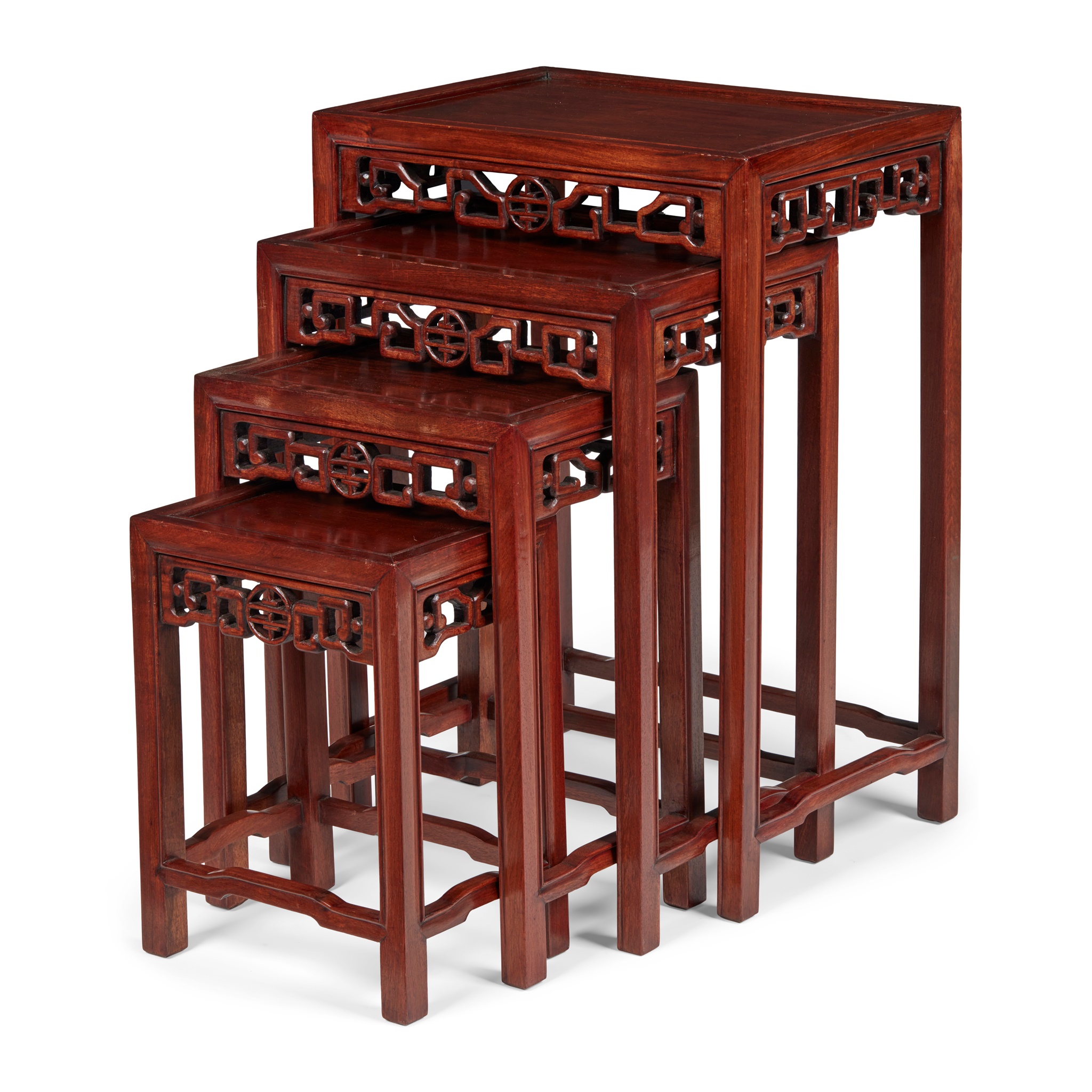 SET OF CHINESE HARDWOOD QUARTETTO TABLES