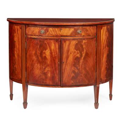 VICTORIAN GEORGIAN STYLE MAHOGANY DEMILUNE SIDE CABINET, BY S. & H. JEWELL