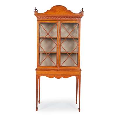 VICTORIAN SHERATON REVIVAL SATINWOOD DISPLAY CABINET