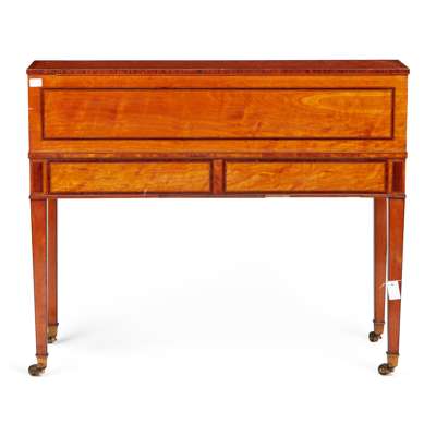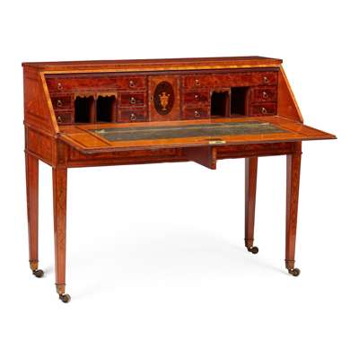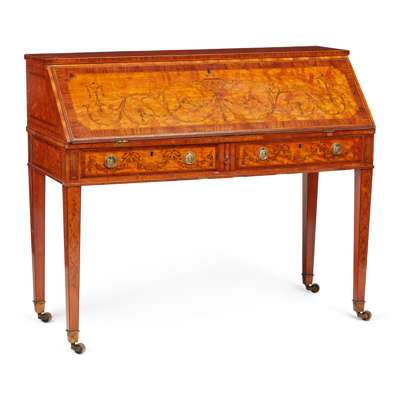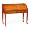VICTORIAN SHERATON REVIVAL SATINWOOD, KINGWOOD, AND MARQUETRY BUREAU, BY EDWARDS & ROBERTS