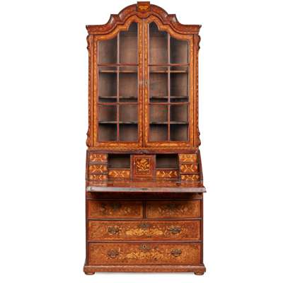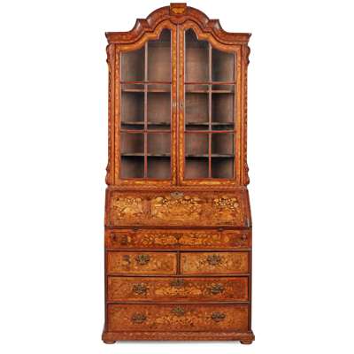 DUTCH WALNUT AND MARQUETRY BUREAU BOOKCASE