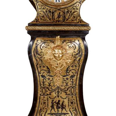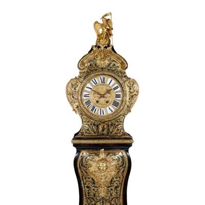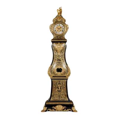 LOUIS XIV STYLE EBONISED, TORTOISESHELL, AND BRASS BOULLE MARQUETRY LONGCASE CLOCK Y