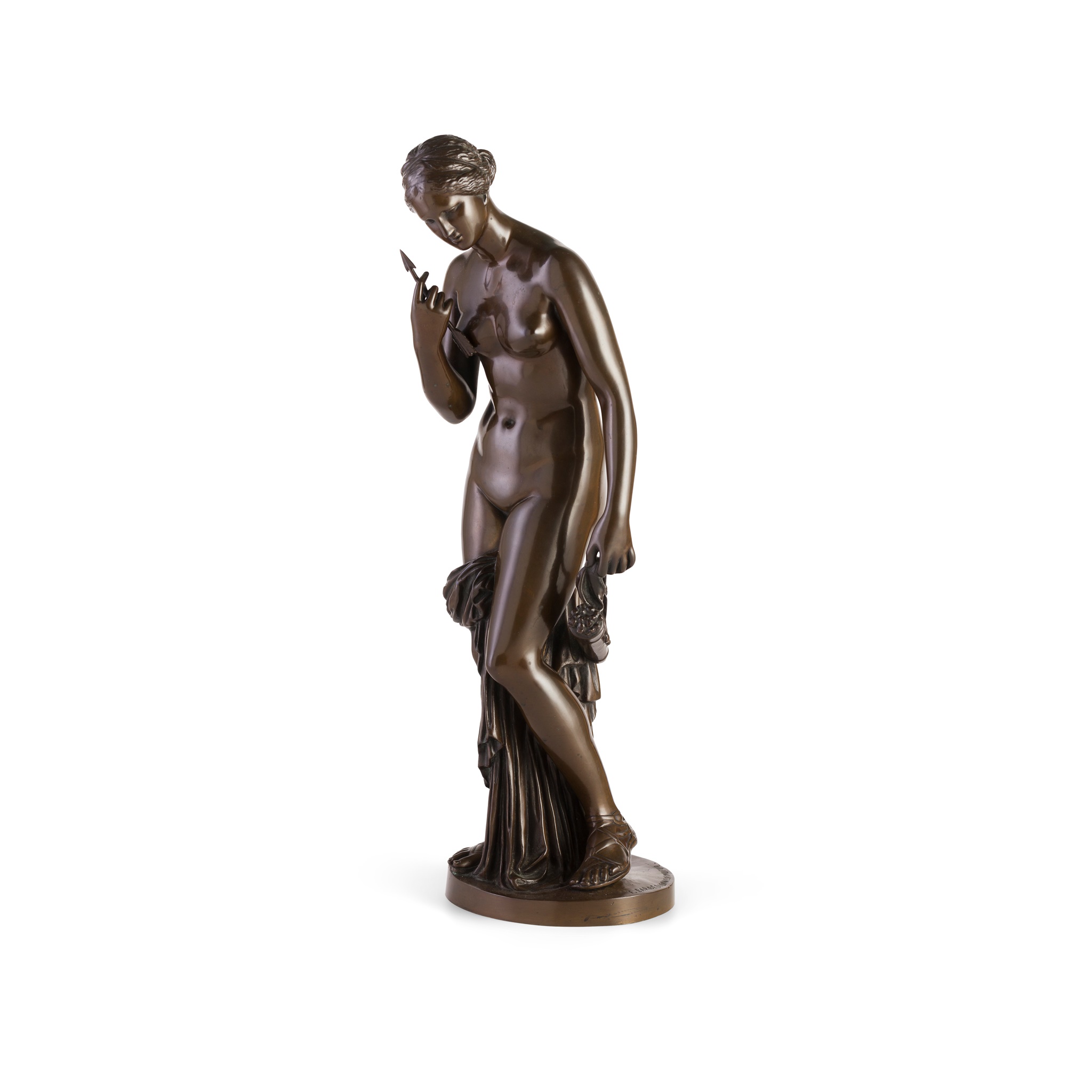 dark brown patina, modelled holding Cupid's arrow and quiver, signed F. BARBEDIENNE FONDEUR, with REDUCTION MÉCANIQUE pastille