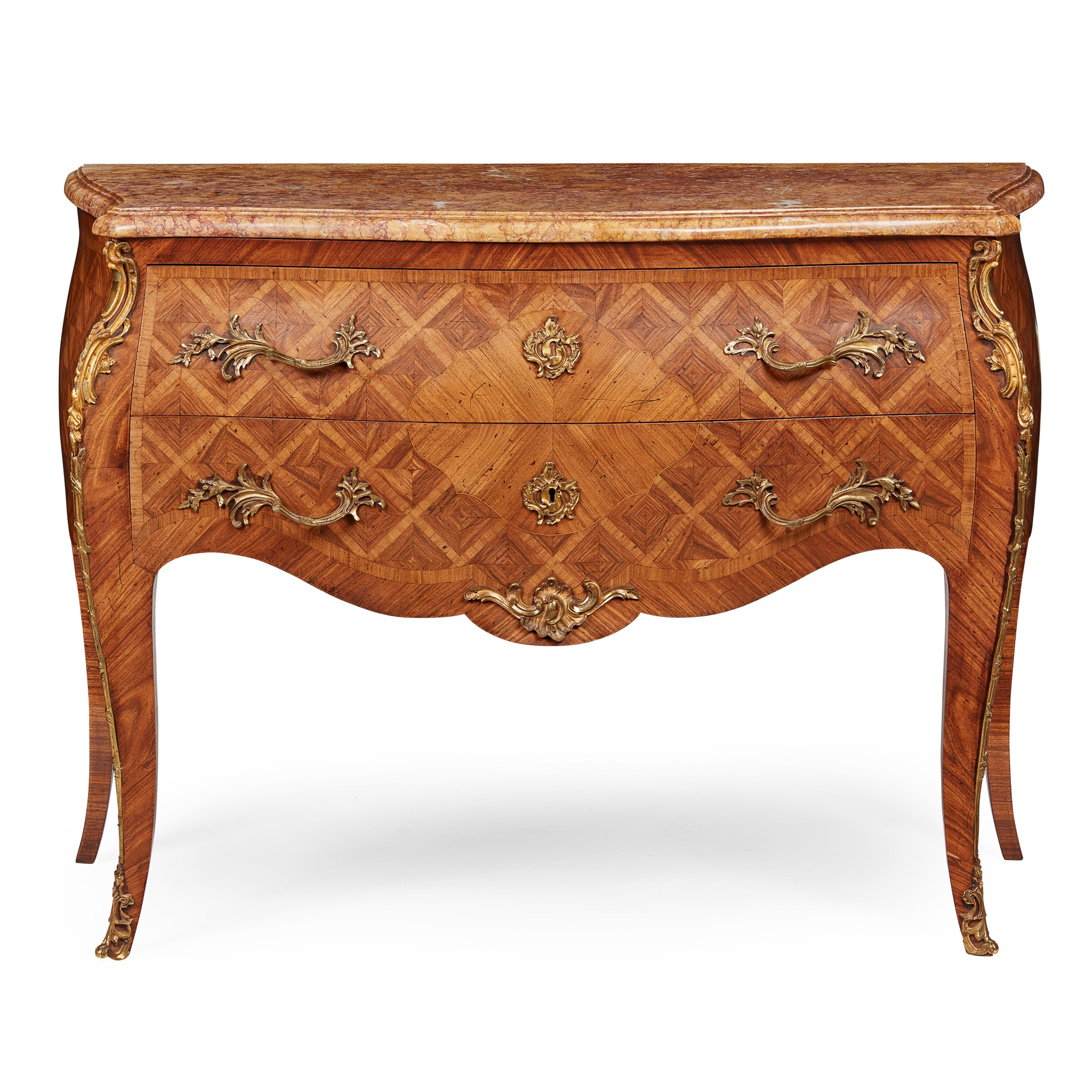 LOUIS XV STYLE KINGWOOD PARQUETRY SERPENTINE COMMODE