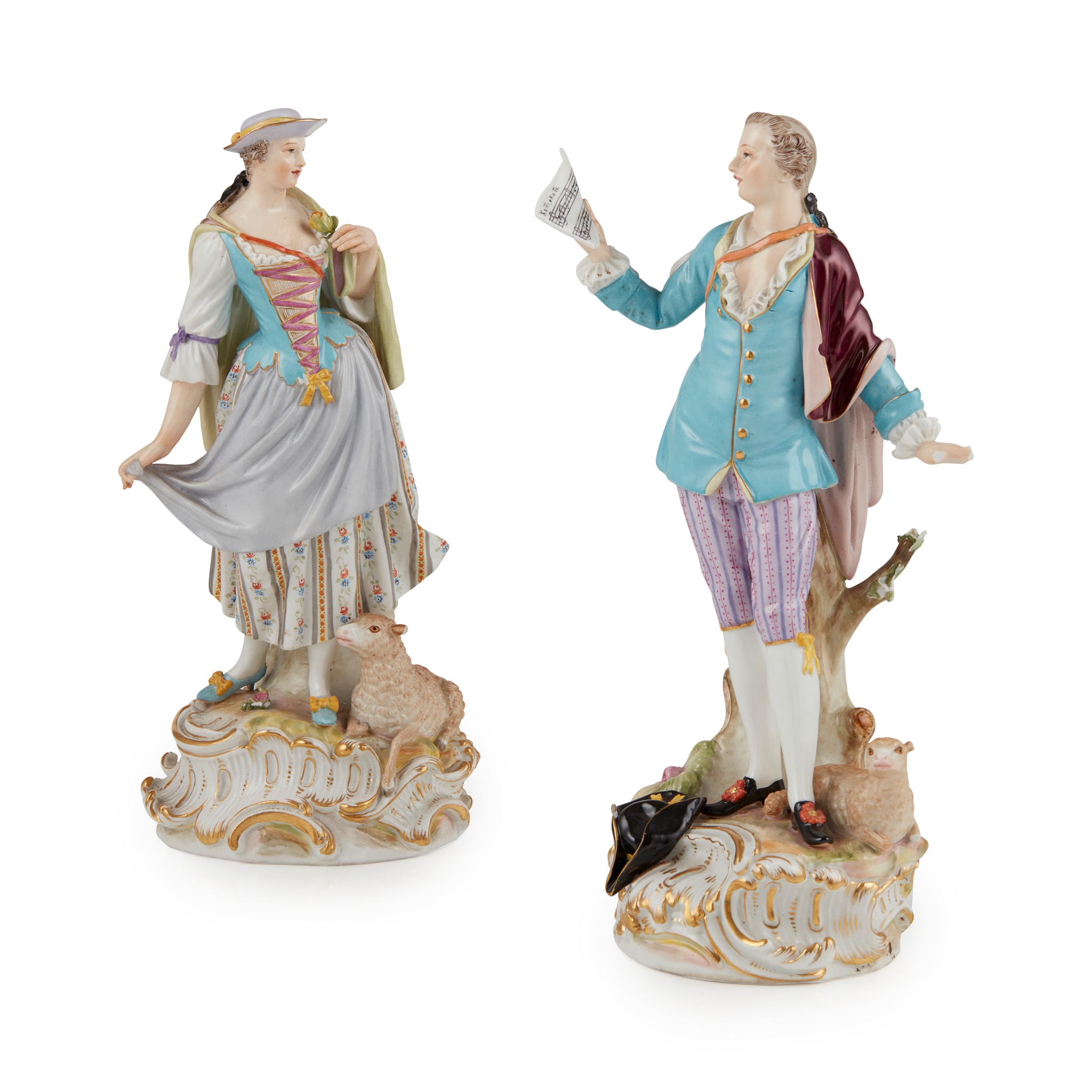 PAIR OF MEISSEN FIGURES OF A SHEPHERD AND SHEPHERDESS
