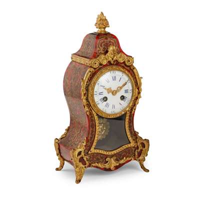 FRENCH RED MANTEL CLOCK IN A ROCOCO CASE Y