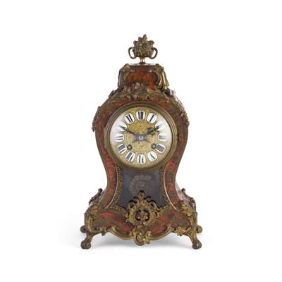 FRENCH RED TORTOISESHELL BOULLE MARQUETRY MANTEL CLOCK Y