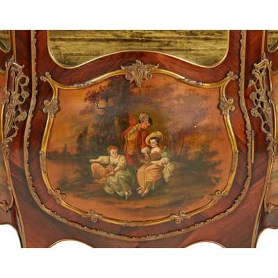 FRENCH ROSEWOOD AND VERNIS MARTIN GILT BRONZE MOUNTED VITRINE CABINET Y